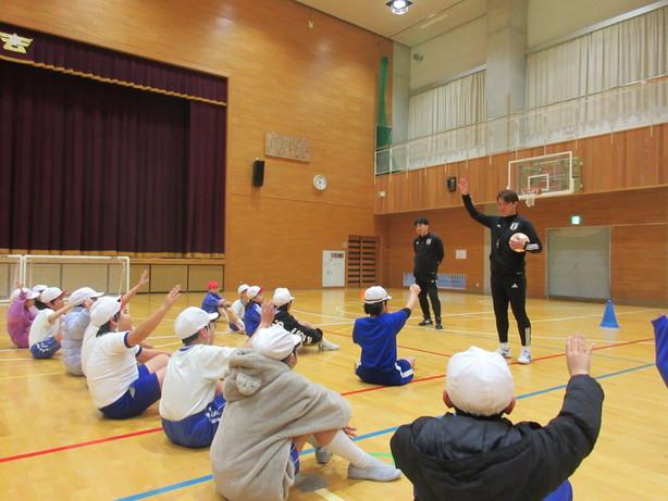 3~6年生がフットサルの体験をしました。サッカー協会さんのご協力で、元サッカー選手の方々に指導していただき、リフティングやドリブルの仕方を教えていただきました。最後には、試合も行いたくさん運動できました。楽しい時間をありがとうございました。