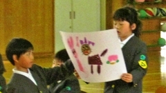 この日,1年生を迎える会を行いました。1年生8名は,6年生と手を繋いで,元気に入場しました。自己紹介では,それぞれが「好きなもの」を紹介してくれました。2~6年生は,1年生に,学校の約束(きまり)をレクチャーしたり,群読を聞かせたり,8の字跳びを見せたり,ダンスを踊ったり,美しい合奏を聴かせたり,能登麦屋節を歌ったり,学校クイズをしたりして,学校生活の楽しさを伝えました。盛りだくさんの内容に,1年生は大喜びでした。