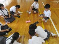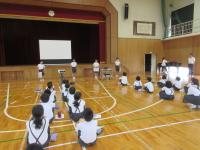 6月の全校集会がありました。各委員会からのお知らせの後、生活委員会が人権集会を行いました。SDGsの2番目と12番目の目標から「私たちができる食べ残しを減らす取組」を縦割り班で考えました。みんな、自分ができることを考え、委員長が代表して発表しました。その後は、縦割り班遊びを行い、とても楽しく過ごしました。