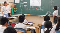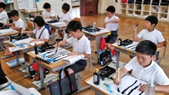 13時20分からの授業参観には,ほとんどの保護者がおいでになりました。1年生は,国語「くちばし」,2年生は算数「100より大きい数を調べよう」,3年生は国語「こまを楽しむ」,4年生は算数「わり算の筆算(1)」,5年生は算数「小数のわり算」,6年生は算数「分数のかけ算」でした。
