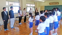 26日(日)の能登麦屋節全国大会に向け,昼休み,4~6年生の参加児童23名が,20日に引き続いての練習を行いました。この日は,いつもの能登麦屋節保存会の井上会長,門前支所の池腰課長,時峯主事の他,本番で演奏してくださる方々3名(太鼓の中田一郎さん,尺八の川島大和さん,三味線の高﨑京子さん)がおいでになり,児童の唄を盛り上げてくださいました。おかげで児童たちは,限りなく本番に近い練習ができ,自信をもつことができました。おいでくださった皆さん,ありがとうございました。さあ,いよいよ全国大会です。保護者・地域の皆さん,是非観に来てください。
