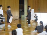 表彰式と児童集会が行われました。児童集会では、各委員会からの今月の目標と取組の発表がありました。放送給食委員会からは「マラソン練習がんばったで賞」の表彰、図書委員会からは「読書マラソンシールラリー」の説明、保健体育委員会からは「姿勢ピンとキャンペーン」に向けての発表がありました。どの委員会も取り組みをがんばってください。
