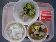 今日は10種類の具を使っておでん風煮をつくりました。たくさんの材料を使うと薄味でもおいしく食べられます。午後から合唱の集いで、3~5年生が出かけるため、給食時間が少し早くなりましたが、いつもより早く給食当番活動も終わって、しっかり食べることができました絵文字:良くできました OK