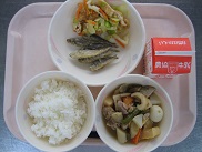 今日はたくさんの材料を使った筑前煮が美味しかったようです。鶏肉、ごぼう、れんこん、じゃがいも、にんじん、たけのこ、うずら卵、ちくわ、こんにゃく、しいたけ、いんげんを使いました。豆あじも意外とみんな好きなようで残す人はいませんでした絵文字:ハート