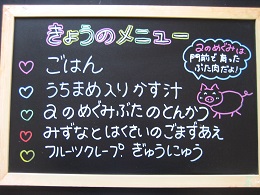 毎年この時期にαのめぐみ豚を出しているので、子どもたちも楽しみにしていました絵文字:四人甘みがあって、柔らかく、とてもおいしい豚肉です。地元産のおいしい食材を、また子どもたちに知らせることができました。ありがとうございました絵文字:ハート