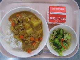 3学期2日めの給食は、カレーライスです絵文字:食事 給食今日は午後の日程が変更になっているので、みんなが残さず早く食べられるメニューにしました絵文字:四人