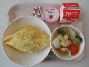 給食当番の子たちも丁寧にチキンライスの上にたまごシートを乗せていました。