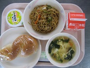 米粉パンはもちもちしていてかみごたえもあるパンです。よくかんで食べていました。梨のゼリーもさわやかでおいしかったです絵文字:四人