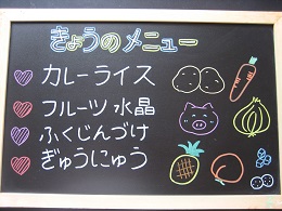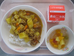 今日のカレーはいつもよりちょっとスパイシーになりましたが、1年生も「大丈夫~」と言って美味しそうに食べてくれました絵文字:良くできました OK くず玉の入ったフルーツ水晶は涼しげなデザートでカレーのあとにさわやかでした絵文字:ハート
