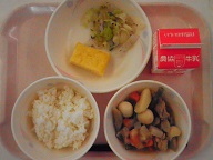 筑前煮には、ごぼうやたけのこ、にんじん、いんげん、じゃがいも、鶏肉、うずら卵、こんにゃく、しいたけが入っていました。よくかんで食べることができました。ゆかりづけもさわやかな味で食べやすかったです絵文字:ハート