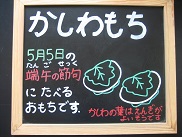 今日は石川県産のにんじんやにんじんの葉っぱ、さつまいもの入ったかき揚げがさっくりと美味しかったです。お餅やあんこが苦手な子もいますが、端午の節句が近いので、柏餅を出しました絵文字:ハート