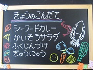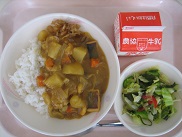 能登産のイカの風味がきいたシーフードカレーでした。サラダにも海藻が入って、今日は海味のメニューでした。残食もゼロでした絵文字:良くできました OK