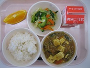 とうふのカレー煮は、ごはんのすすむ料理です。今日は1年生や2年生もおかわりしていました。とうふの他、たまねぎ、こまつな、青梗菜、にんじんなど、野菜もたくさんとれます絵文字:星絵文字:星