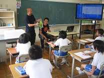 鹿磯漁港に北海道からイカ漁に来ている、有櫛さんと平井さん、漁協の稲垣さんからお話をききました。先日の地場産物給食のイカをとってきてくれた漁師さんたちです。漁明けのお疲れのところ、本当にありがとうございました絵文字:良くできました OK