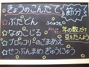 今日は節分なので、節分豆を出しました。ちょっと豆が苦手だと言う子もいましたが、1年に一度の豆ということで、残さず食べていました。教室で豆まきをした学年もあったようです絵文字:犬