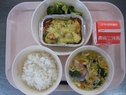 今日はじゃがいもを蒸してウインナー、玉ねぎ、ピーマン、にんじんを炒めた中に混ぜ、白味噌、マヨネーズなどで味付けをし、カップにつめてチーズをのせて焼きました。おいしく焼けて良かったです。スープもコーンたっぷりで食べごたえありました絵文字:良くできました OK