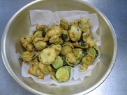 門前産のズッキーニのサンプルをいただきました。来週、給食で使用予定です。フリッターにします絵文字:星