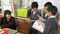「You can play baseboll ?」5年生が,外国語活動の授業で職員室に来て,次々に職員に英語で質問してきました。時代ですね。もちろんこちらもそれに応えて,「Yes,I can. 」(中央写真左の方が,ALTのジェフリー先生です。)