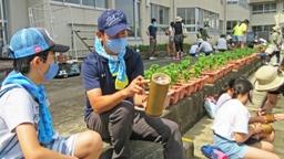 門前東小学校おやじの会・禅の里づくり推進協議会主催で「竹灯籠づくりワークショップ」が行われました。この日は,子供たちや保護者,お世話下さった方々など,計50名ほどが参加。9月11~21日に行われる「ぜんのきらめき」を彩る竹灯籠づくりを行いました。竹に穴を開ける際に電動ドリルを使うため,常に主催者の方々が子供たちを支援して下さいました。おかげで,みんな素晴らしい作品を作り上げました。お世話下さった皆様,ありがとうございました。この活動は新聞各社にて取り上げられました。左上写真は北國新聞,中央下写真は北陸中日新聞に掲載されたものです。5年Sさんは,「穴の間隔を同じにするのが難しかったけど,スコンと貫通したときは気持ちが良かった。」と喜んでいました。