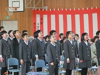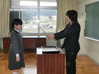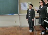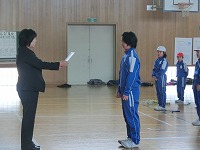 校長先生より,この一年の頑張りについてのお話,周囲の人々に感謝の気持ちをもちながら,次の学年へ目標をもって進むこと等についてのお話がありました。その後,生徒指導より春休みの生活についてのお話があり,修了式が終わりました。