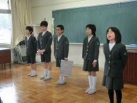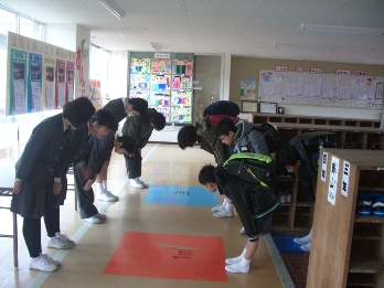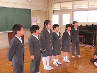 中学校へ行っても、元気な挨拶をしてください。在校生は、これからも元気な挨拶を続けましょう。