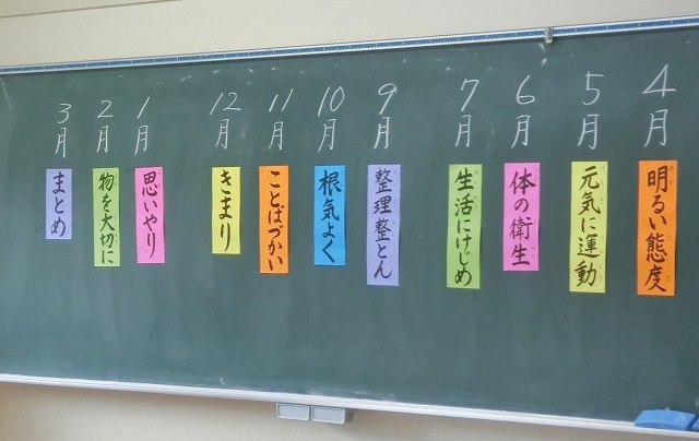 生活目標の話は「今年度の生活目標を振り返り,1つでも2つでも目標を達成できたかどうかの確認やこれからもがんばっていこう。」というお話でした。