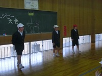 なぞなぞ形式のかるたで読み札がなぞなぞで,取り札がなぞなぞに対する答えになっているものでなかなか難しいかるたでした。各委員会に分かれての大会でしたが,委員会対抗ではなく委員会の中での個人戦でした。子どもたちは熱中して取り組んでいました。