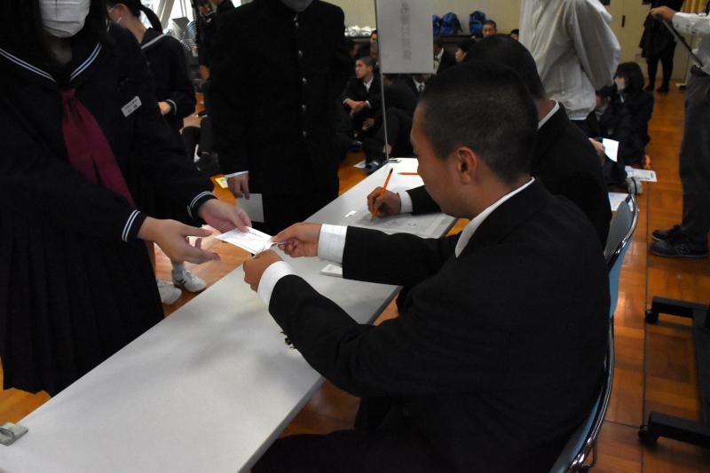 模擬選挙では、石川県知事を選ぶという設定で投票をおこないました。模擬選挙公報をよく読んだうえで、思い思いの候補者を選び、投票箱に向かう生徒たちのすがたがみられました。また、一部生徒は投票事務従事者として、投票管理者や受付等の役割も体験できました。その様子をうかがいながら、将来、公務員として選挙にたずさわる人や、立候補者として選挙活動をする人がでてきたら喜ばしいなあ、と想像してしまいました。
