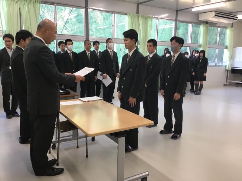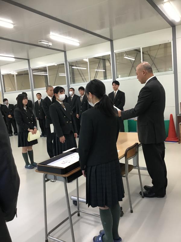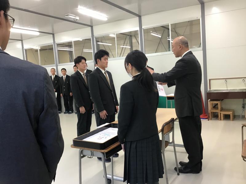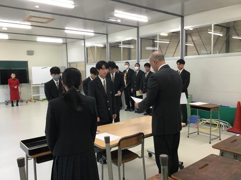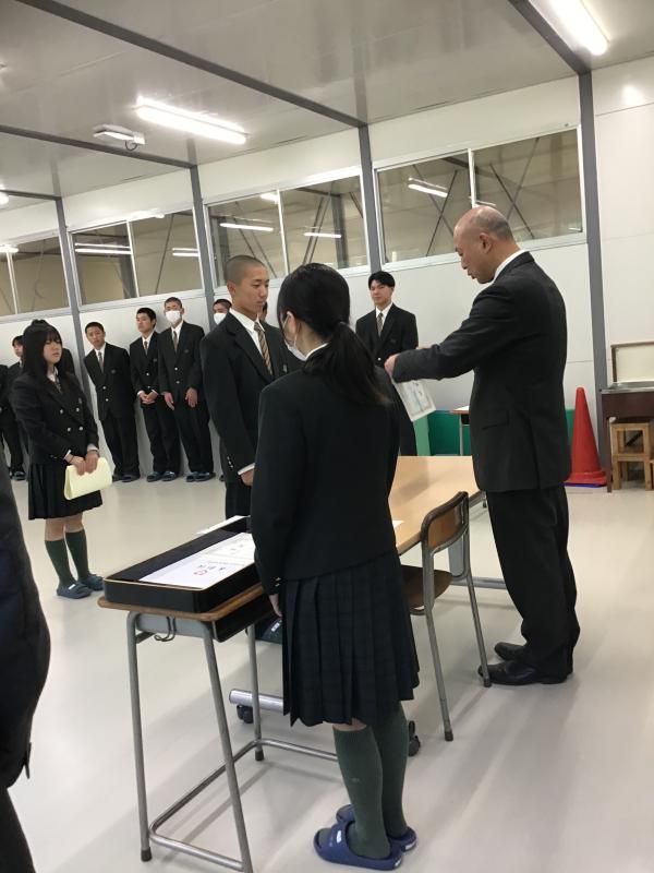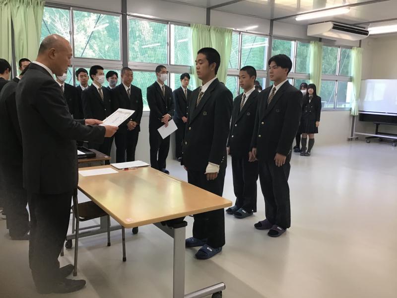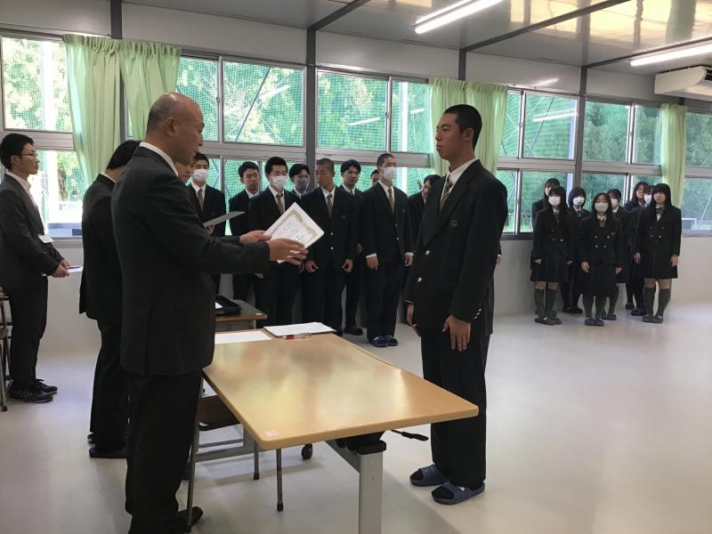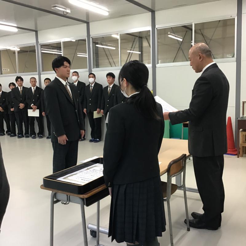令和7年度2学期の終業にあたり、表彰伝達式と終業式が仮校舎で、各クラスに分かれたリモート形式で行われました。