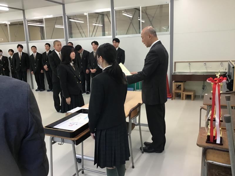 はじめに、2学期中に輝かしい成果を挙げた生徒たちの表彰が行われました。各分野での活躍は以下の通りです。