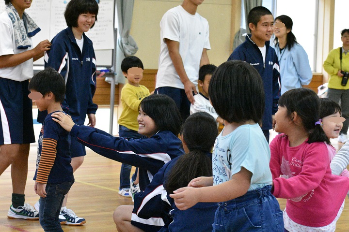乳幼児とのふれあいを通して、幼い子どもたちの活動や様子を知り、幼い子どもたちに接するためには思いやる心が大事であることを体験してもらいました。