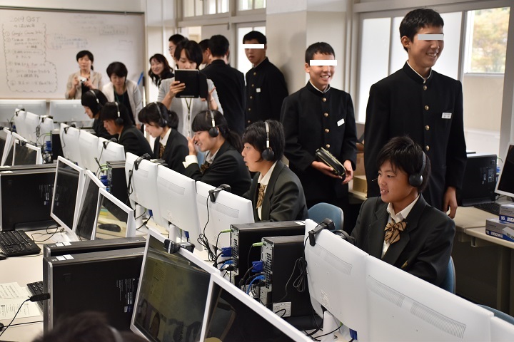門前高校では、OST(インターネットを用いて直接外国人と会話する授業)を導入し、普段の授業では確保しづらい一人ひとりの発話の機会を拡充することで、生徒の英会話力・プレゼンテーション力向上に向けた対策を行っています。