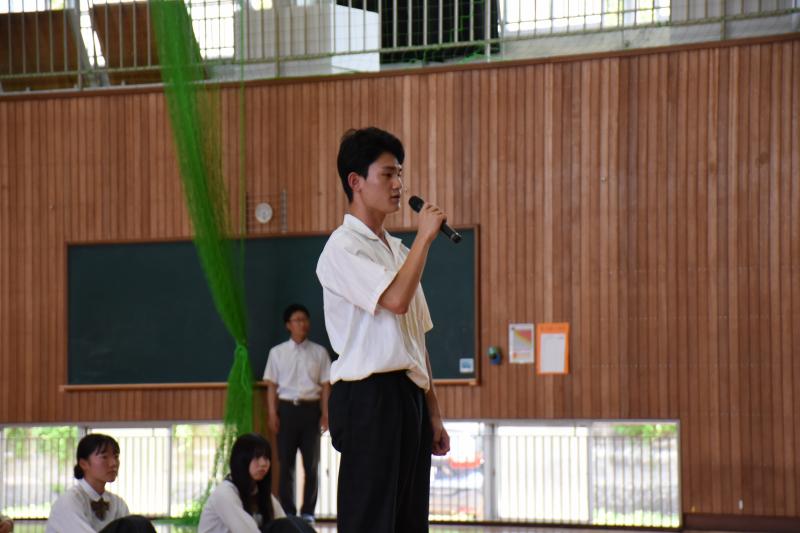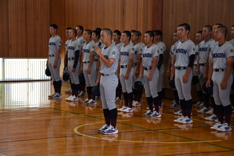 生徒会長 平向汰一くんは「野球部がたくさん練習をしてきたことは僕たちや門前町のみなさんが一番わかっています。頑張ってきてください」と励ましていました。