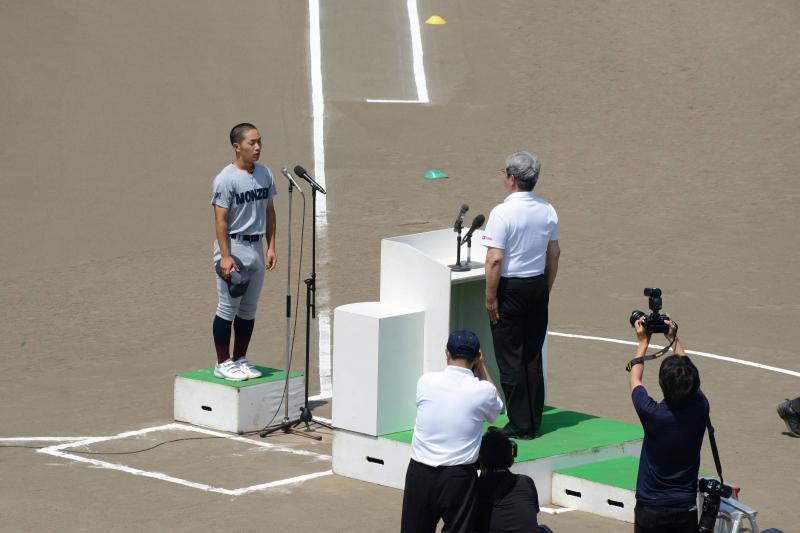 野球部のキャプテンの大豊瑠侍くんが大会で勝ち上がることによって門前町の人々に感謝を伝えたいという思いを語りました。