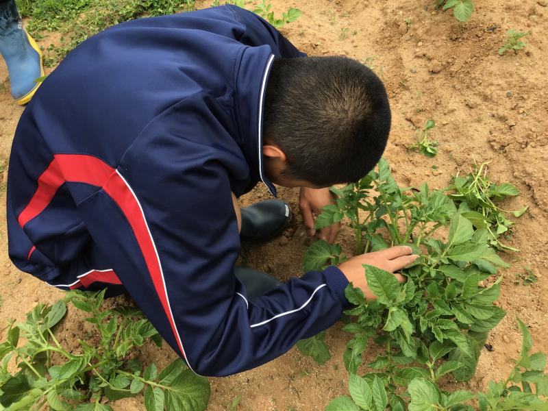 3年生は「芽かき」がすでに終わっています。この夏休みはより大きな「ジャガイモ」の「収穫」に向けて、「追肥」(基礎基本の再確認)、「土寄せ」(見えてきた苦手の克服)をすることが大切です。来年4月以降の自分の姿を思い描きながら、努力を続けてください。努力は素質を上回り、気力は実力を越えます。期待しています。