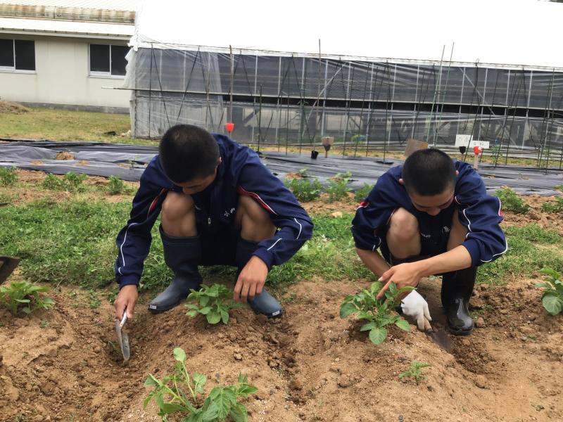ジャガイモの収穫の時には「まだ葉っぱが黄色くないけれど……(収穫してもよいのか)」という学習した知識を踏まえた生徒の声もありましたが、授業日数の関係もあり、収穫を行いました。たくさん収穫できたものの、残念ながらほとんどが日光に当たり緑色に変色してしまいました。しかし、今回の失敗から多くの課題に気づくことができました。失敗は成功のもとと言うように、課題を一つひとつ解決し、次回の成功に繋げてほしいと思います。
