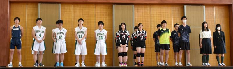 閉会式も女子と男子で別々に行われました。門前中学校では、門前中学校福光校長先生が「今日の交歓会は中学生と高校生がスポーツを通して交流することが第一の目的であり、生徒の様子を見て、その目的が達成されたように思います。お疲れさまでした」と生徒の頑張りを讃えていました。門前高校では門前高校中澤校長先生が「連携型中高一貫校として、中学校と高校が連携し、様々な活動をしている学校は県内ではここだけです。来年度以降もぜひ行っていきたいです。今日はお疲れさまでした」と述べました。