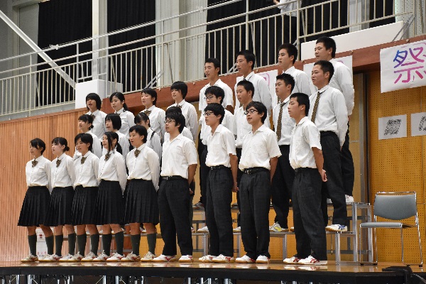 本校では中高一貫の取り組みとして、中学生とともに生徒会役員が門前中学校の玄関前でのあいさつ運動を行っています。