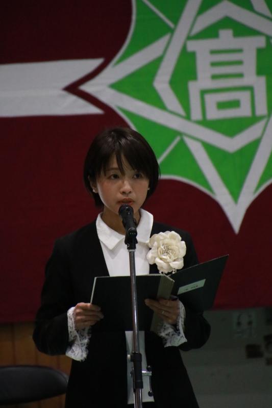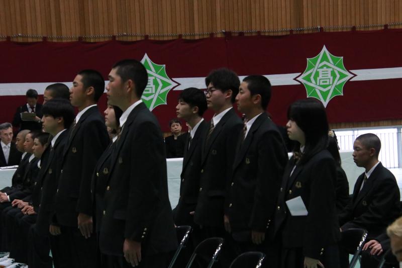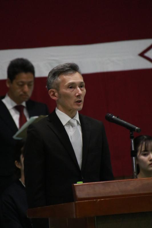 度重なる困難に直面しながらも、地域に笑顔を届けた卒業生へ励ましの言葉を贈りました。高校生活で培った助け合う心や挑戦する意志を大切にし、「今日までの仲間は生涯の友」として、未来へ進むよう激励しました。