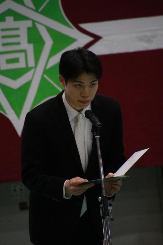 卒業生への感謝と尊敬の念を込め、「先輩方の歩んだ道を追いかけながら、私たちも成長していきます」と決意を語りました。