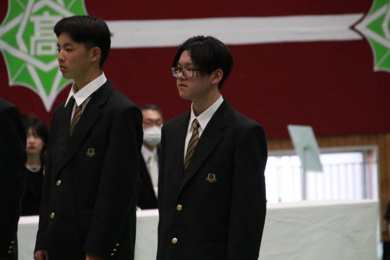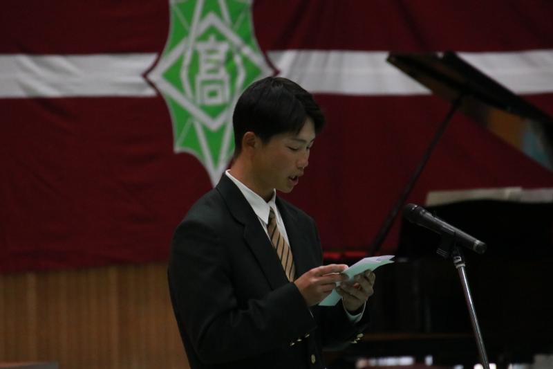 在校生代表の浜辺蒼介さんより、自身の入学当初の経験を交えつつ、新入生への励ましと門前高校での多彩な学び・経験の機会について紹介がありました。「一歩ずつ前に進めば、必ず成長できる」と力強く語りました。
