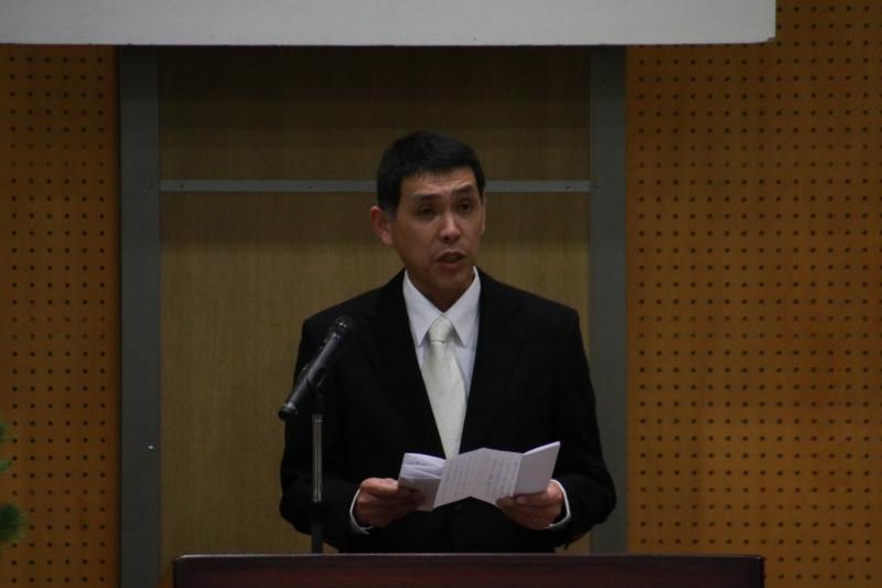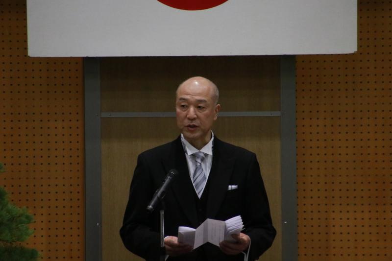 卒業生が地域の希望の光となり、大人たちを勇気づけてくれたことに感謝を述べ、どんな困難にも負けず、人生を歩んでほしいとエールを送りました。