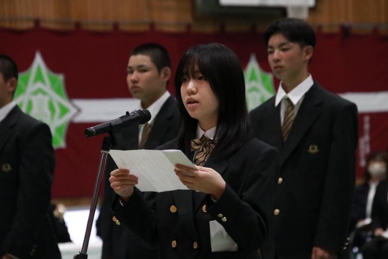 多くの支えのもとで成長できた3年間への感謝を述べるとともに、これからの人生で得た学びを活かしていくことを誓いました。