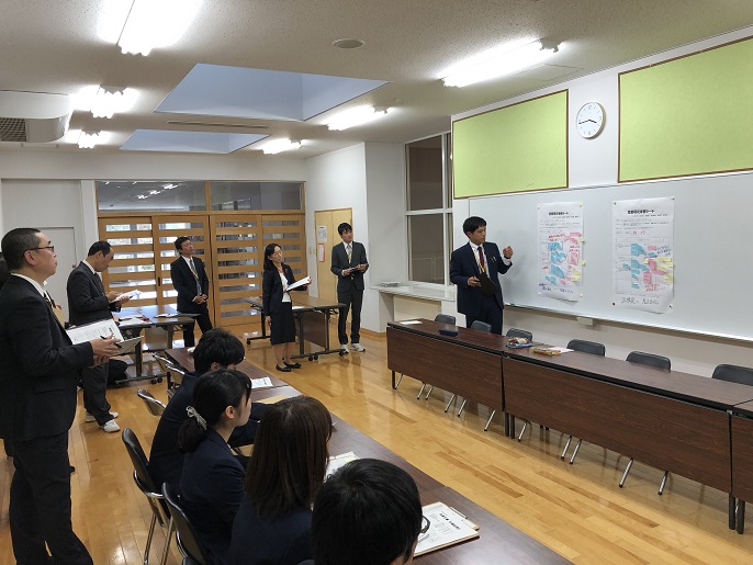 門前中学校の「令和元年度 指導主事 計画訪問B」の公開授業及び研究授業に本校から9名の教員が授業参観をしました。また、国語科の研究授業整理会及び全体会に4名の教員が参加しました。次の写真は、整理会でのグループ協議の発表の様子です。
