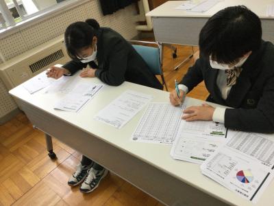 令和3年11月12日(金)、本校の3年生を対象にして、ライフイベント表作成にチャレンジすることで「夢の実現とお金」の関わりについて、SMBCコンシューマーファイナンス株式会社の金沢お客様サービスプラザ(石川県金沢市)の方をお招きして金融経済教育を行いました。お金の面から計画を立て実行することで夢や目標は達成しやすくなること、早期から貯蓄方法や家計管理を学ぶことを知りました。