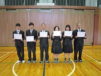 本日は後期生徒会役員退任式及び前期生徒会役員認証式が行われました。前期生徒会会長の田川くんは生徒会役員として生徒会の行事を盛り上げていきたいこと、そのために生徒や教員たちと協力していきたいという熱い思いを語ってくれました。
