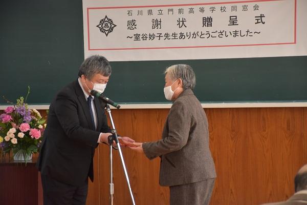 室谷妙子先生への感謝状贈呈式が開催されました。