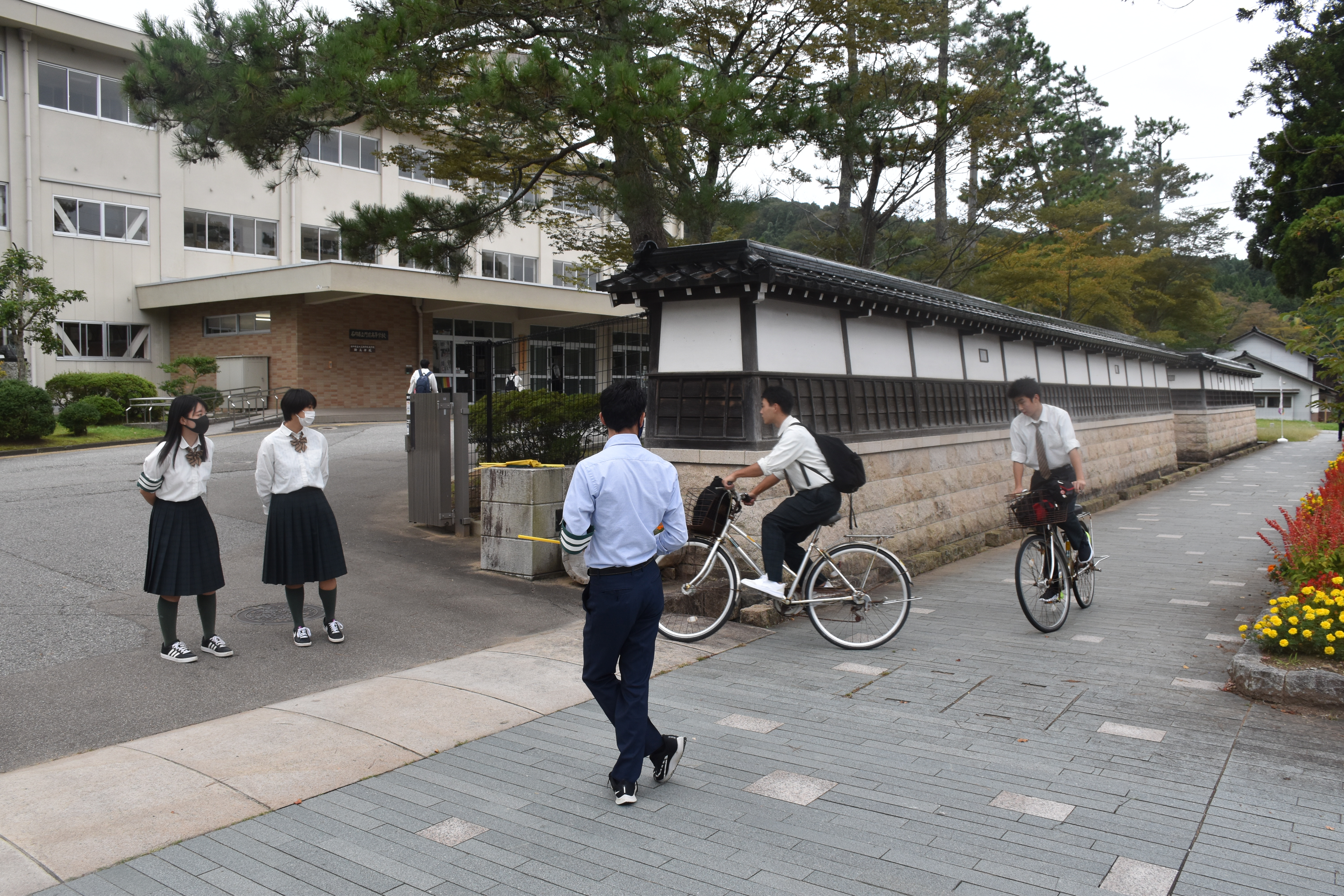 令和3年10月1日(金)、後期が始まりました。後期の始まりは、10月とは思えない暑い日が連日のように続きます。その中で、毎月1日と15日は生徒指導課と生徒会課が中心となって交通安全を啓発する日でもあります。生徒のみなさん、最近では日没がとても早いです。お互いに交通安全に留意して登校しましょう。