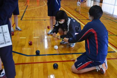 令和3年10月21日(木)、7月に開催予定であり、新型コロナウイルス感染拡大のため、延期していた校内球技大会を開催しました。午前はバレーボール、午後は特別支援学校輪島分校の生徒と一緒にボッチャとグランドゴルフを楽しみました。