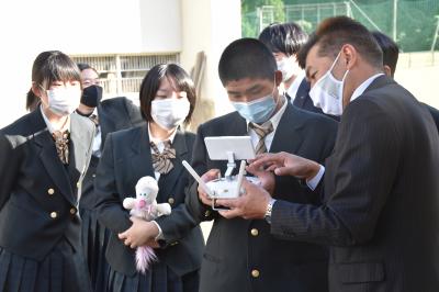 令和3年10月22日(金)、本校1年生を対象に「建設業に関する出前講座」を石川県土木管理部の主催で開催しました。本講座は、建設業の仕事内容の一端を体験したり、実際に建設業に携わる方の声を聴くことに よって、建設業の仕事に関心を持ち、今後の進路選択に活かすことを目的としています。出前講座では、生徒がドローンを実際に2基飛ばして門前高校付近の航空写真を撮影する体験をさせていただきました。生徒たちは建設業に興味を持っていたようで、「建設業へ就職するためにはどのような資格が必要であるか」など質問をしていました。